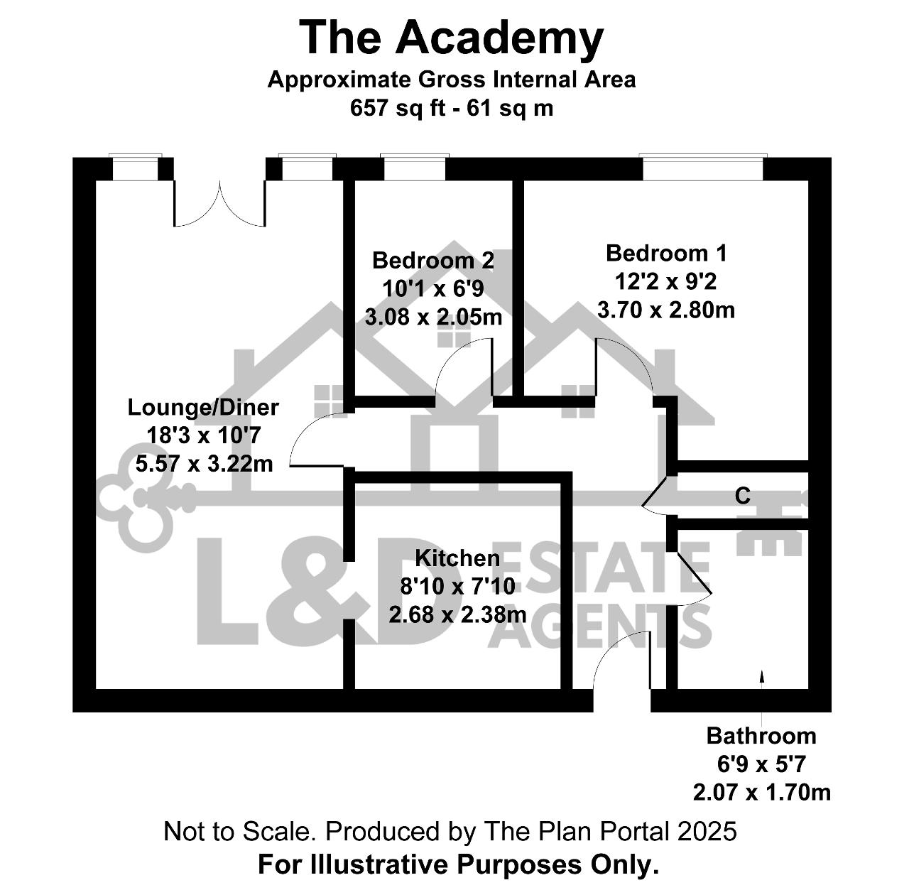 TOTAL AREA - APPX 657 SQ FT - 61 SQM