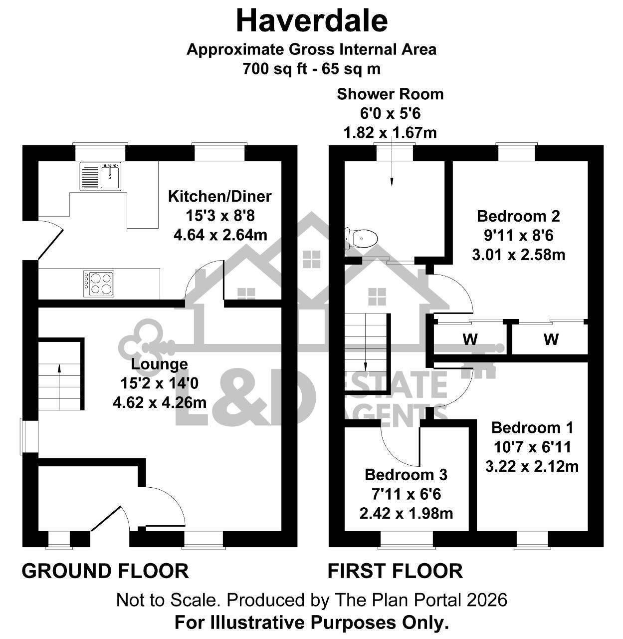Bedroom 1 - 10' 6'' x 6' 11'' (3.22m x 2.12m) Double glazed window to the front aspect, radiator and laminate flooring