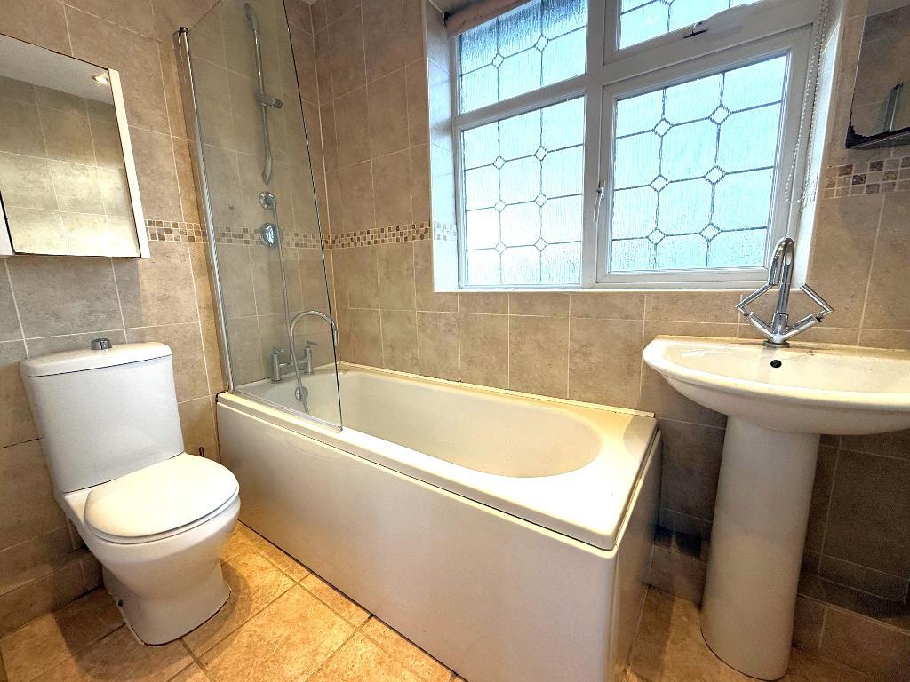 Bathroom - 7' 6'' x 4' 7'' (2.31m x 1.42m) Double glazed window to the front aspect, three piece bathroom suite, fully tiled, heated towel rail and tiled flooring