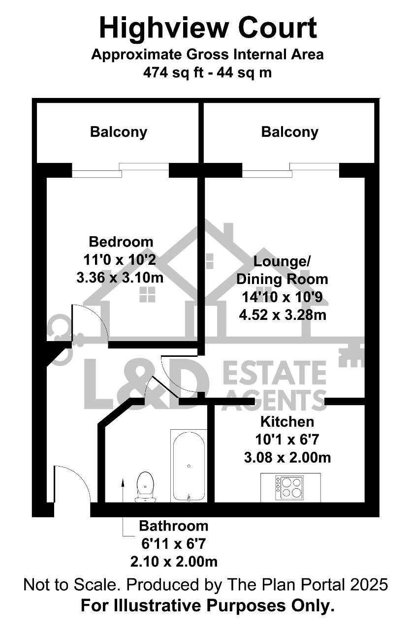 TOTAL AREA - APPX 474 SQ FT - 44 SQM