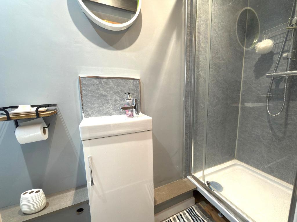 Shower Room - 8' 9'' x 2' 6'' (2.68m x 0.78m) Double glazed window to the rear aspect, extractor fan, shower cubicle, low level wc, wash hand basin and lminate flooring