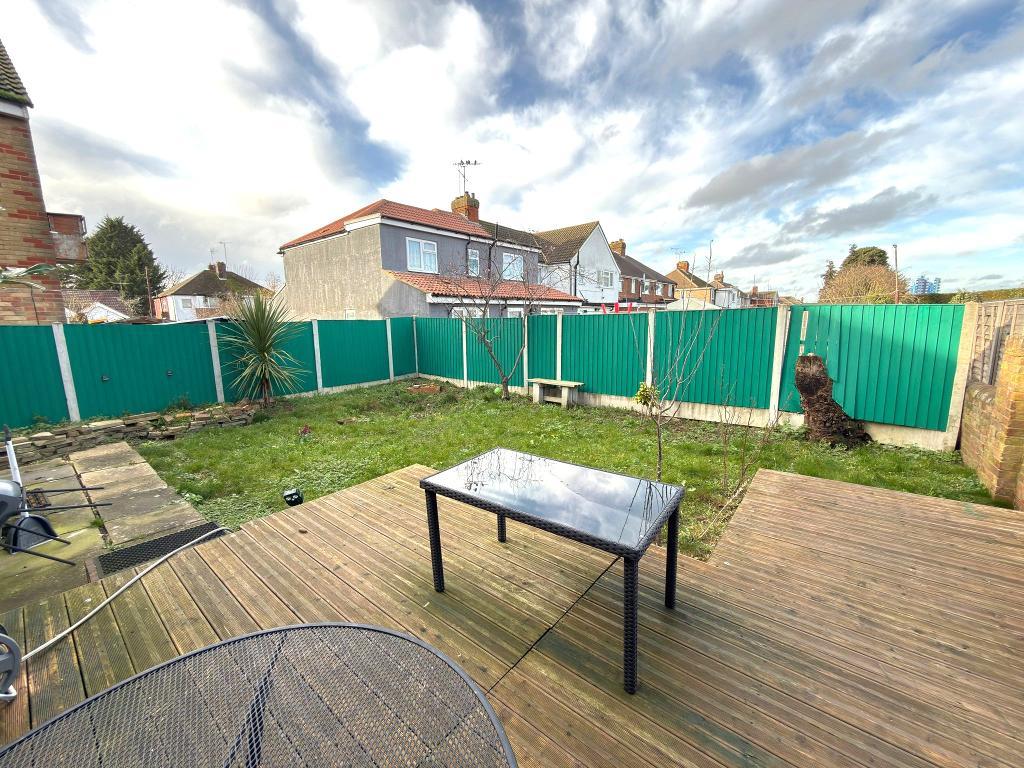Rear Garden - Laid to lawn, patio area, further decked patio area and up & over door to garage