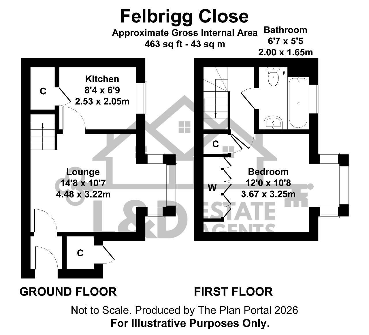 TOTAL AREA - APPX 463 SQ FT - 43 SQM