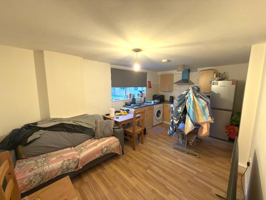 Open Plan Lounge/Kitchen/Diner - 16' 4'' x 9' 8'' (4.98m x 2.95m) Double glazed windows to the rear aspect, range of wall & base level units, inset sink unit, built in oven & hob, plumbing for washing machine, space for fridge/freezer, electric radiator and laminate flooring