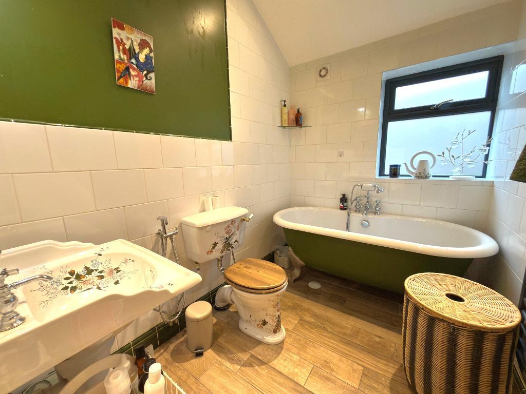 The bungalow features three generously sized double bedrooms with the master suite boasting a luxurious shower room complete with a double shower cubicle. The separate family bathroom is thoughtfully designed, showcasing a stylish three piece suite with a charming roll-top bath, perfect for those relaxing evenings.