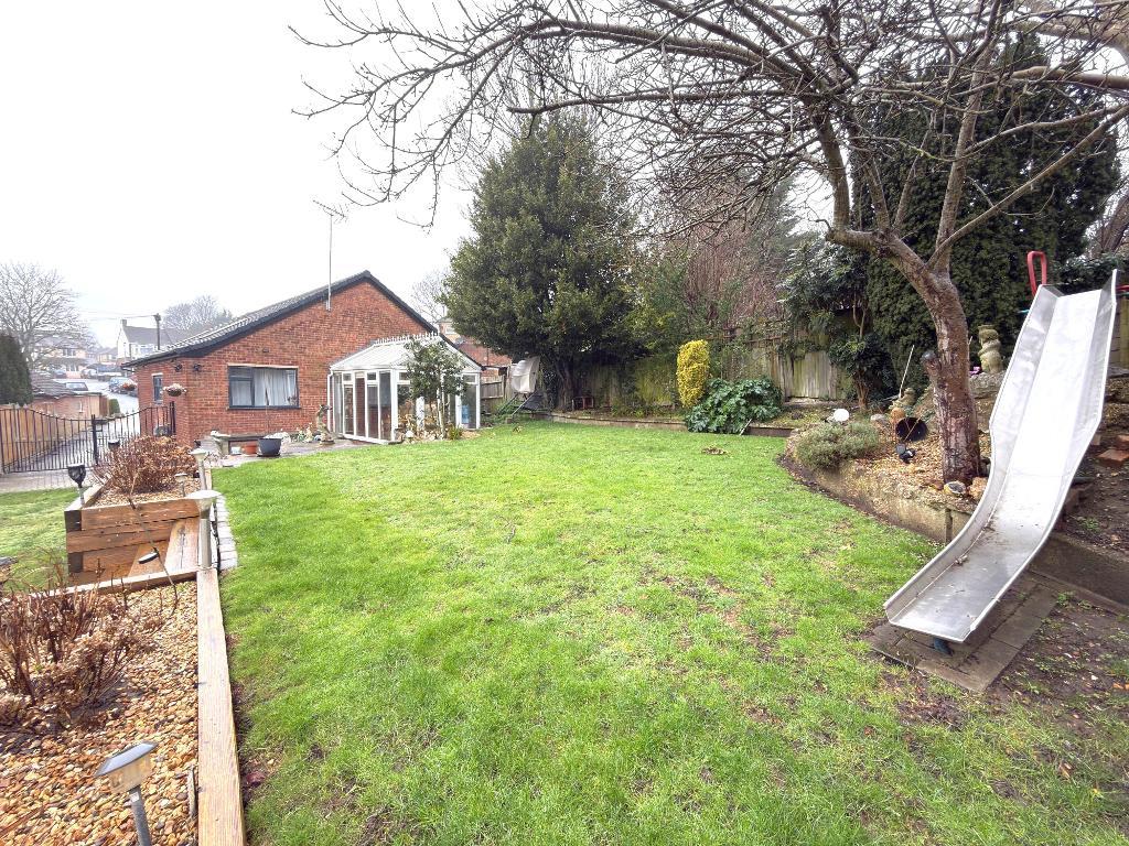 Externally the large rear garden is tiered into two/three levels and is predominantly laid to lawn, adorned with raised sleeper beds, a picturesque rockery, and a sizable feature fish pond. A lovely patio area invites you to enjoy al fresco dining and outdoor gatherings, while a garden shed offers extra storage. Gated access to the front of the property leads to a spacious driveway providing off road parking for several vehicles.