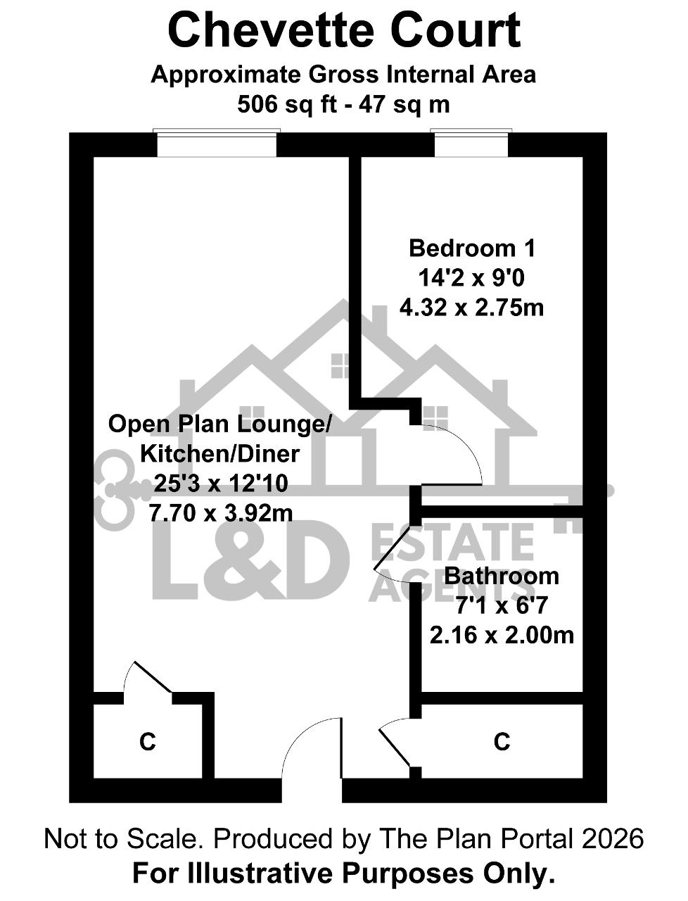 TOTAL AREA - APPX 506 SQ FT - 47 SQM