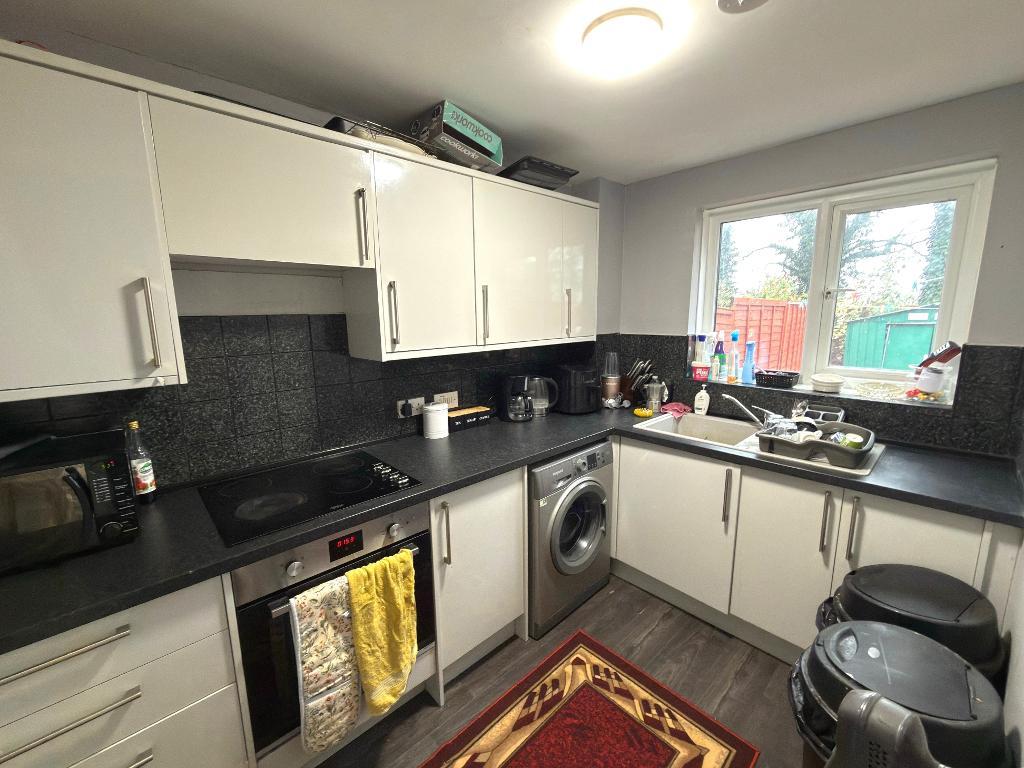 Kitchen - 9' 10'' x 6' 6'' (3m x 2m) Double glazed window to the rear aspect, range of wall & base level units, inset sink unit, built in oven & hob, pluming for washing machine, built in cupboards, space for fridge/freezer and laminate flooring