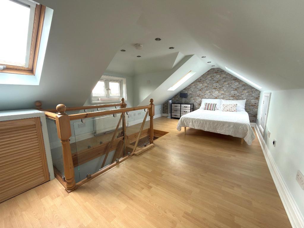 Bedroom 3 - 18' 1'' x 10' 7'' (5.53m x 3.25m) Double glazed window to the rear, velux style windows to the front & rear, built in storage, eaves storage, radiator, laminate flooring
