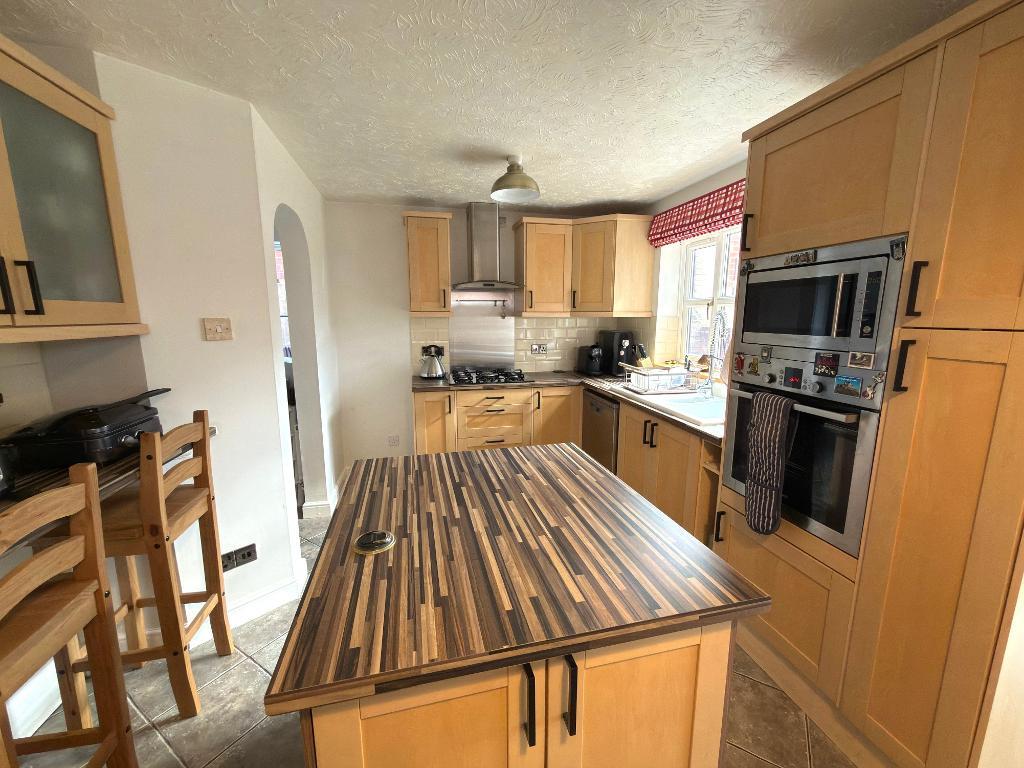 Kitchen/Diner - 17' 11'' x 10' 9'' (5.48m x 3.29m) Double glazed window to the rear & side, range of wall & base level units with inset ink, built in oven & hob, island unit, breakfast bar, provision for dishwasher, space for fridge/freezer, built in microwave, radiator, tiled flooring