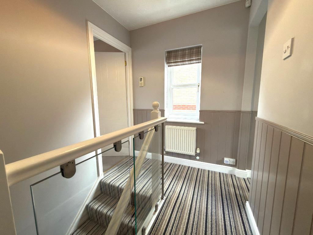 Landing - Double glazed window to the side, stairs to the second floor, built in cupboard housing hot water tank