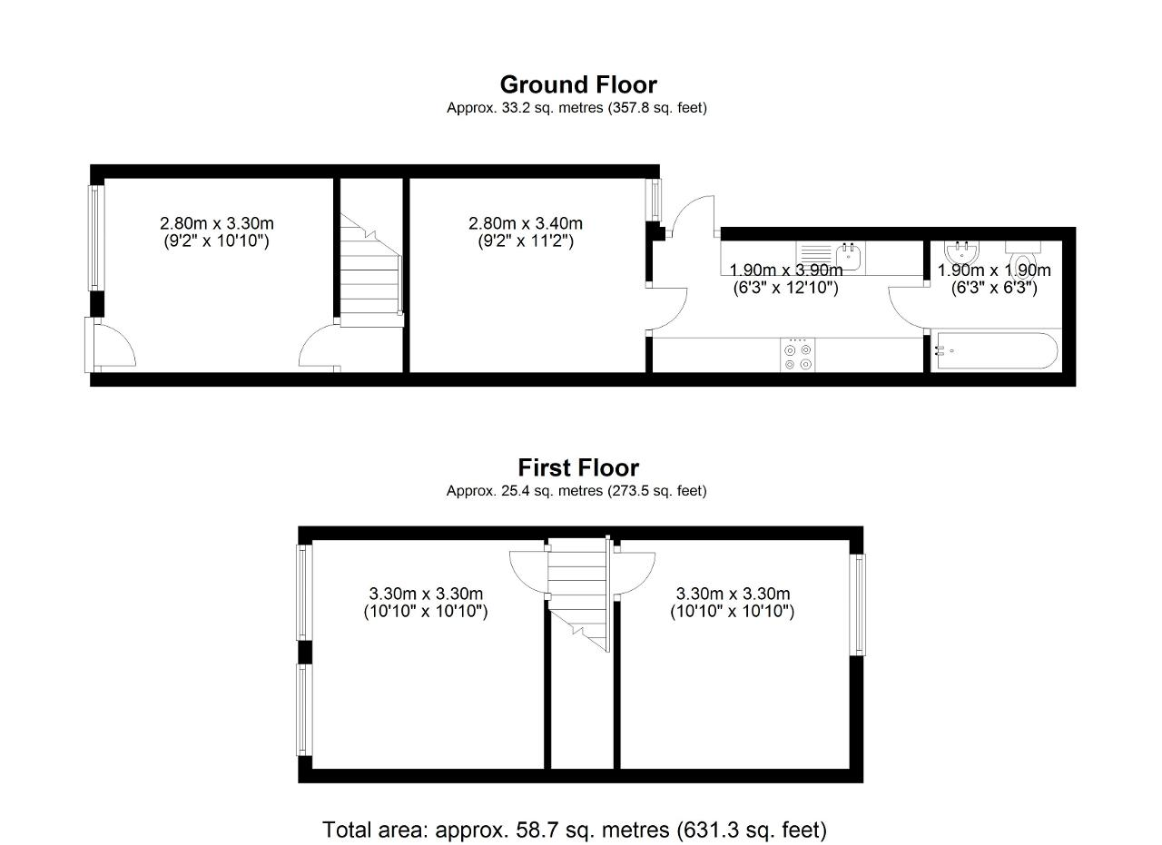 Bedroom 2 - 10' 9'' x 10' 9'' (3.3m x 3.3m) Double glazed window to rear aspect and radiator.