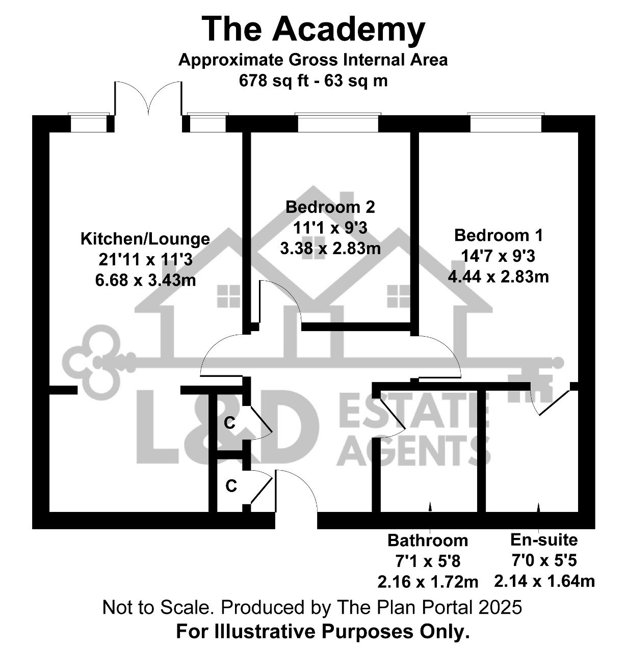 TOTAL AREA - APPX 678 SQ FT - 63 SQM