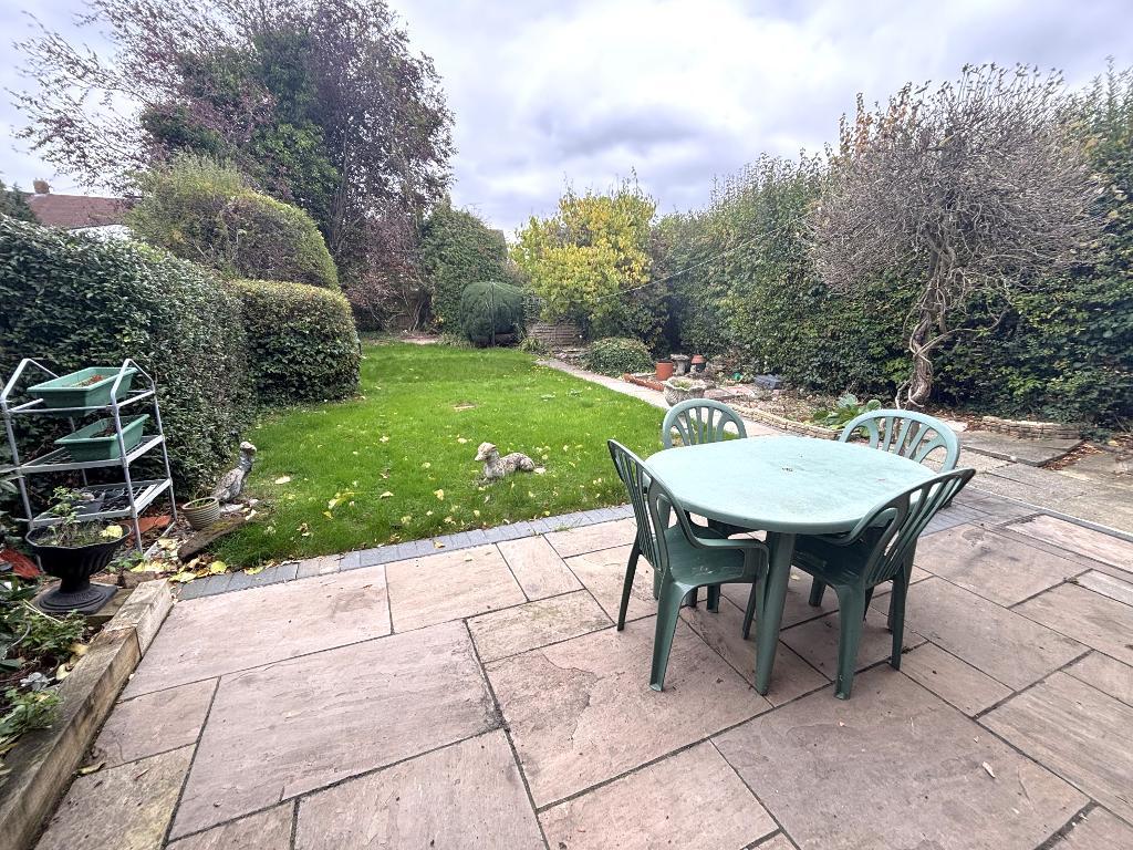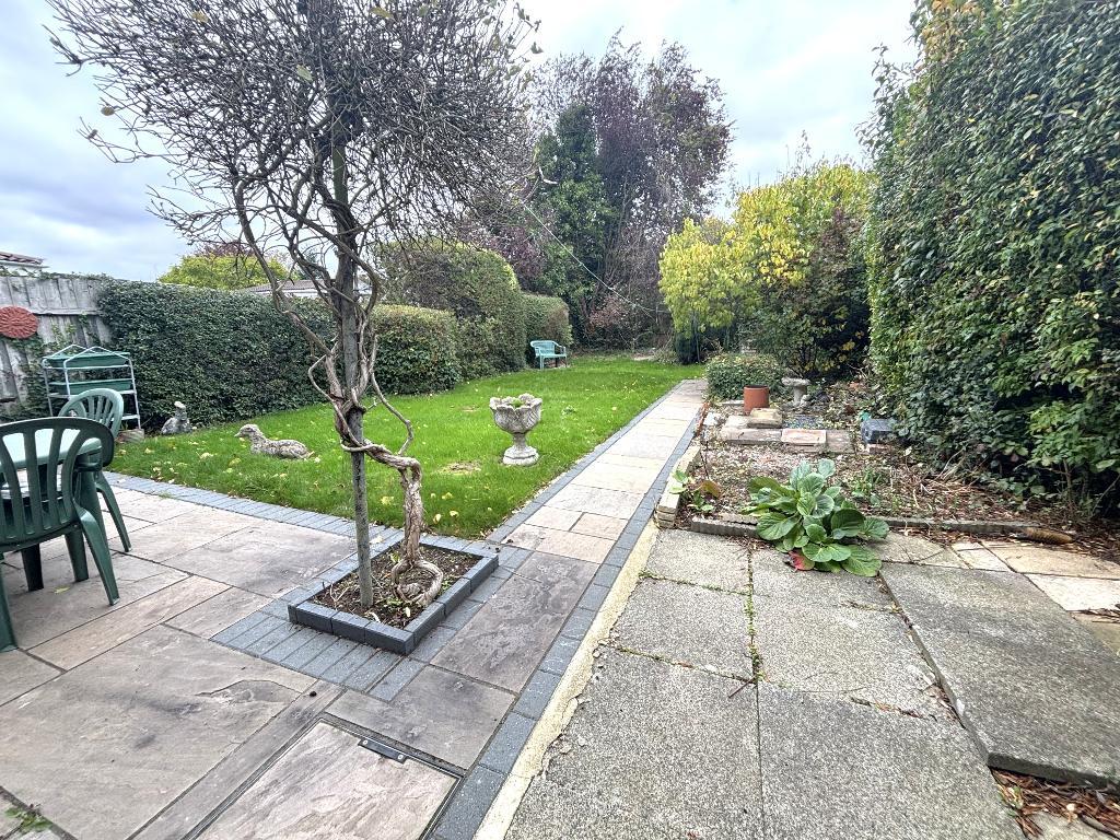 As you enter, you are greeted by a spacious entrance hallway that leads to the well proportioned lounge area & kitchen. The dining room features elegant French patio doors that open directly into a large rear garden, creating a seamless flow between indoor and outdoor living. The garden is a true highlight, boasting a generous size with a patio area, ideal for entertaining or enjoying quiet moments in nature.