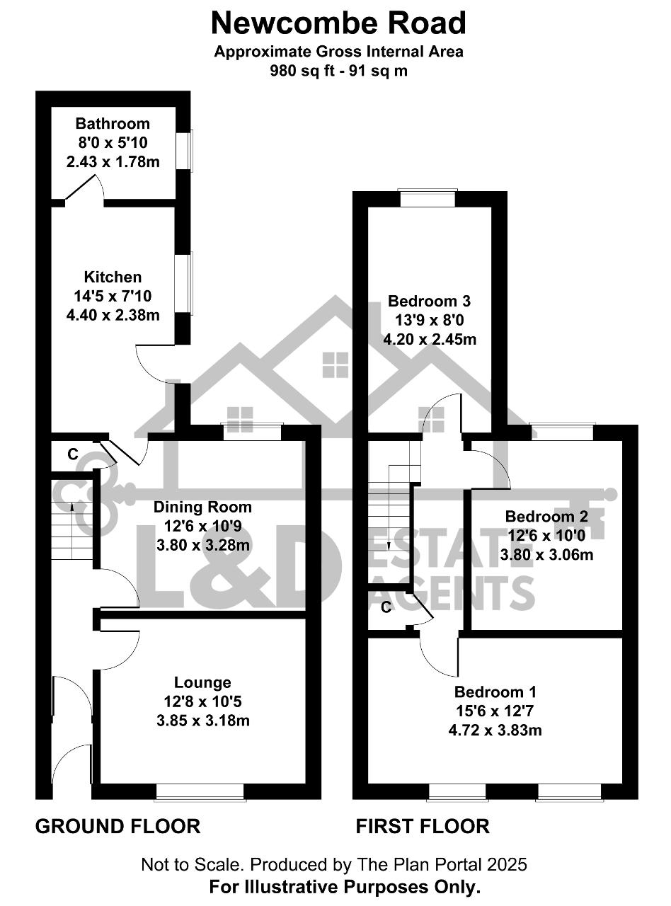 Bedroom 2 - 12' 5'' x 10' 0'' (3.8m x 3.06m) Double glazed window to the rear aspect, radiator and laminate flooring