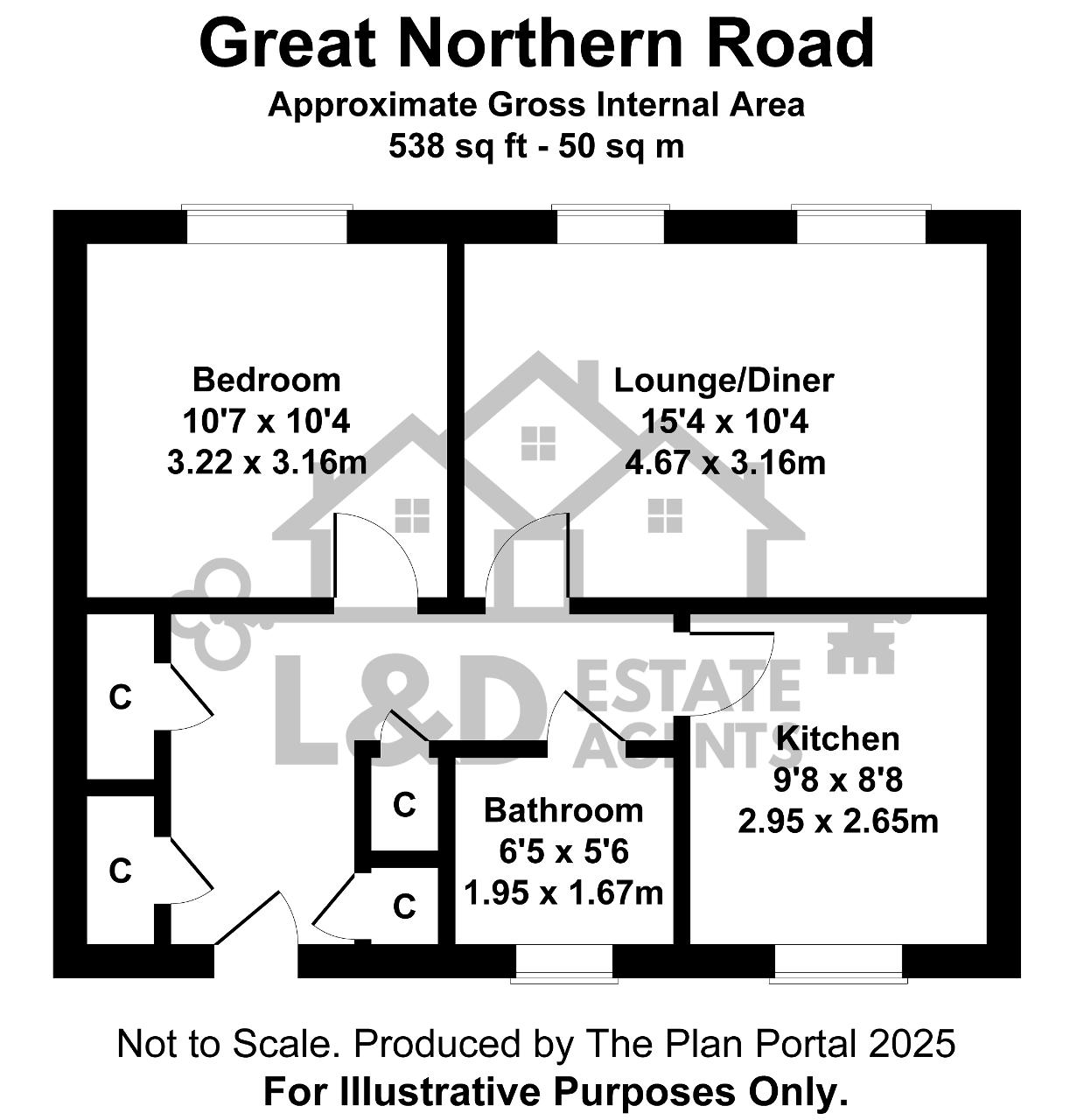 TOTAL AREA - APPX 538 SQ FT - 50 SQM
