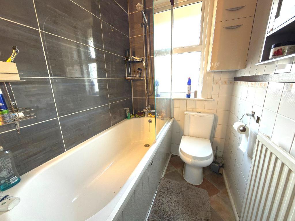 Bathroom - 8' 0'' x 4' 7'' (2.46m x 1.4m) Double glazed window to the front aspect, three piece bathroom suite, radiator and vinyl flooring