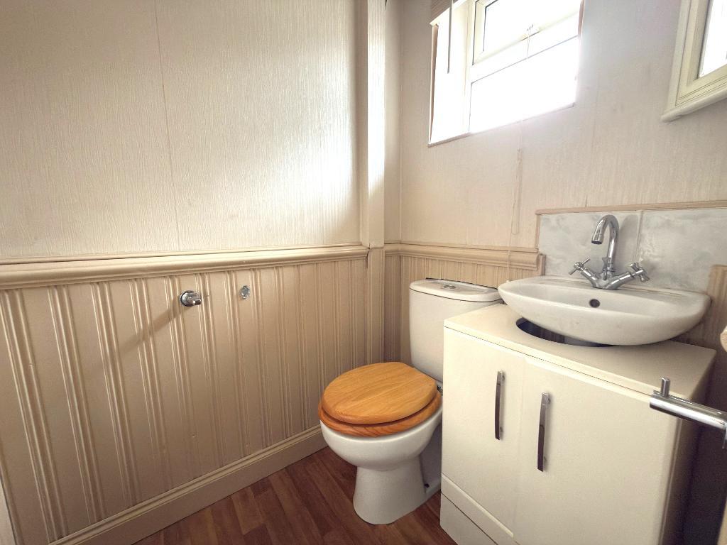 Cloakroom - Double glazed window to the front aspect, low level wc, wash hand basin, radiator and vinyl flooring