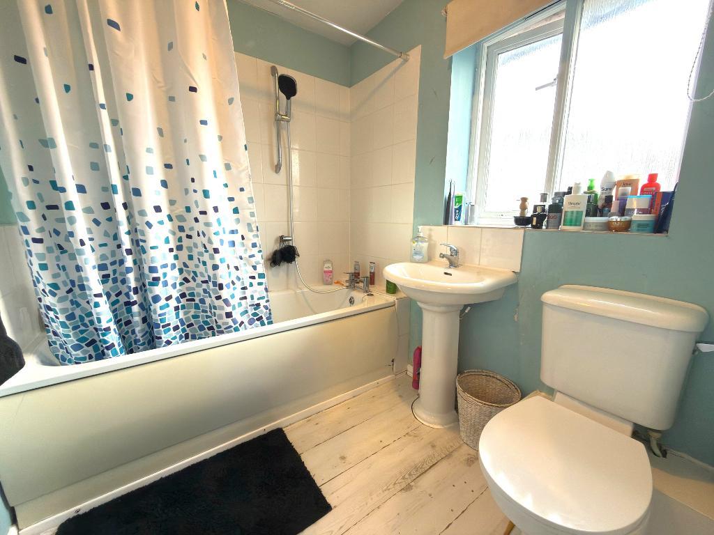 Bathroom - Double glazed window to the front aspect, three piece bathroom suite, radiator and laminate flooring