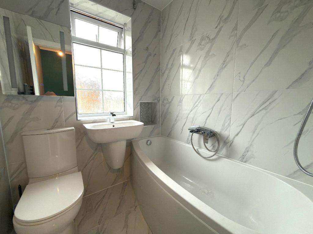 Bathroom - Double glazed window to the rear aspect, three piece bathroom suite with shower unit, fully tiled and tiled flooring