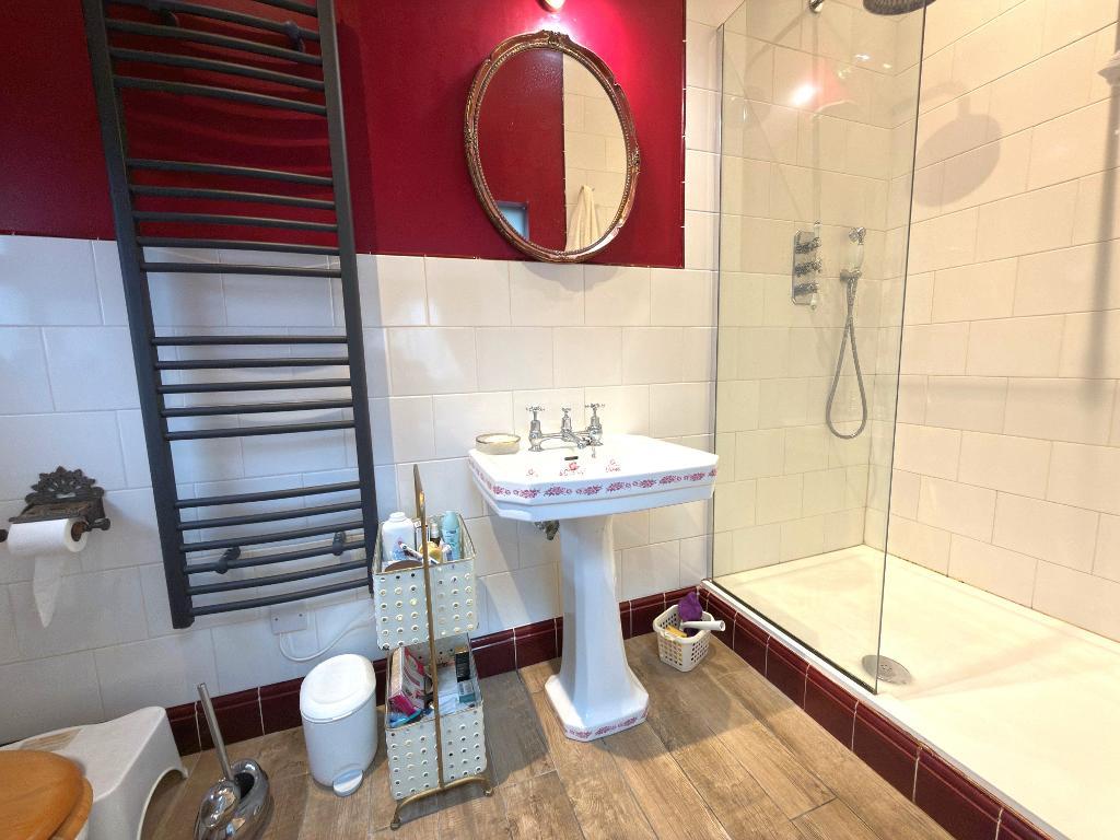 Ensuite - 10' 4'' x 3' 9'' (3.15m x 1.15m) Double shower cubicle, low level wc, wash hand basin, heated towel rail and tiled flooring