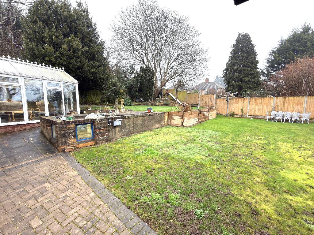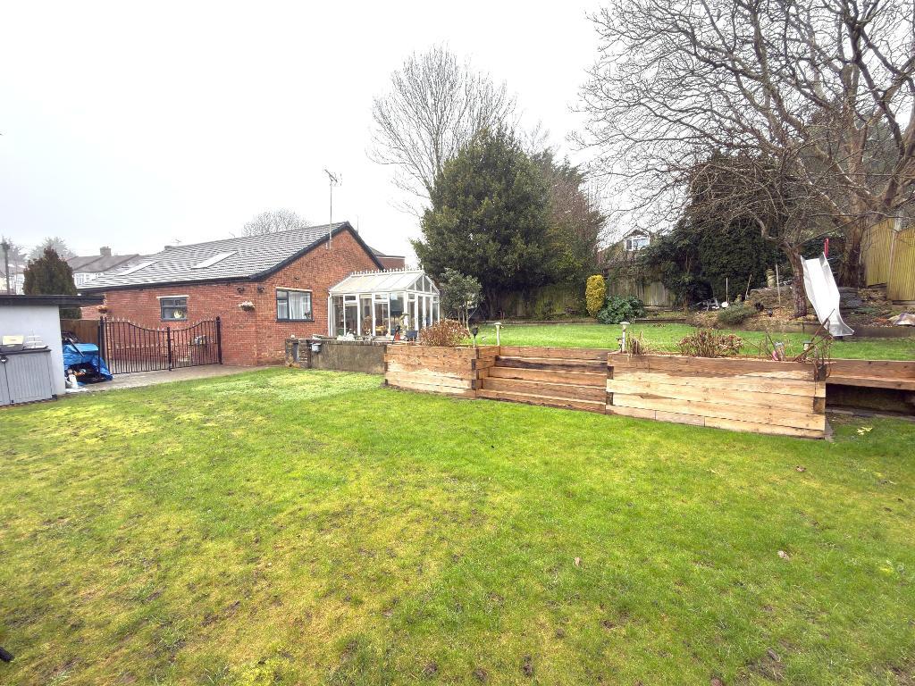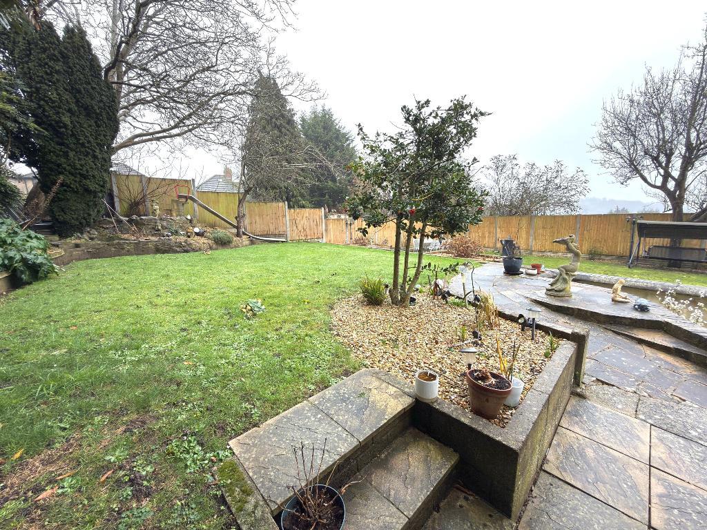 Externally the large rear garden is tiered into two/three levels and is predominantly laid to lawn, adorned with raised sleeper beds, a picturesque rockery, and a sizable feature fish pond. A lovely patio area invites you to enjoy al fresco dining and outdoor gatherings, while a garden shed offers extra storage. Gated access to the front of the property leads to a spacious driveway providing off road parking for several vehicles.