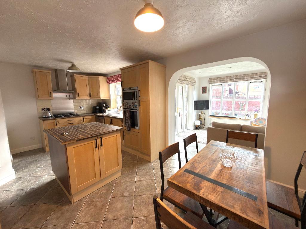 Kitchen/Diner - 17' 11'' x 10' 9'' (5.48m x 3.29m) Double glazed window to the rear & side, range of wall & base level units with inset ink, built in oven & hob, island unit, breakfast bar, provision for dishwasher, space for fridge/freezer, built in microwave, radiator, tiled flooring